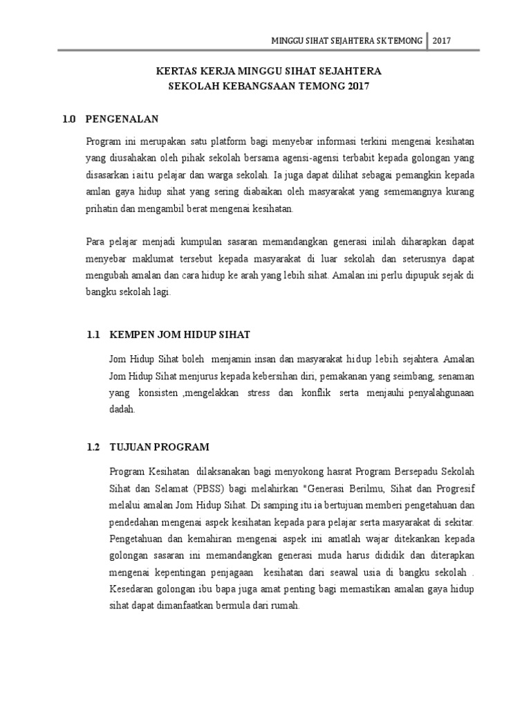 Contoh Kertas Kerja Sambutan Hari Kesihatan